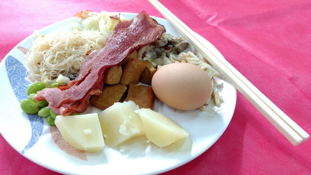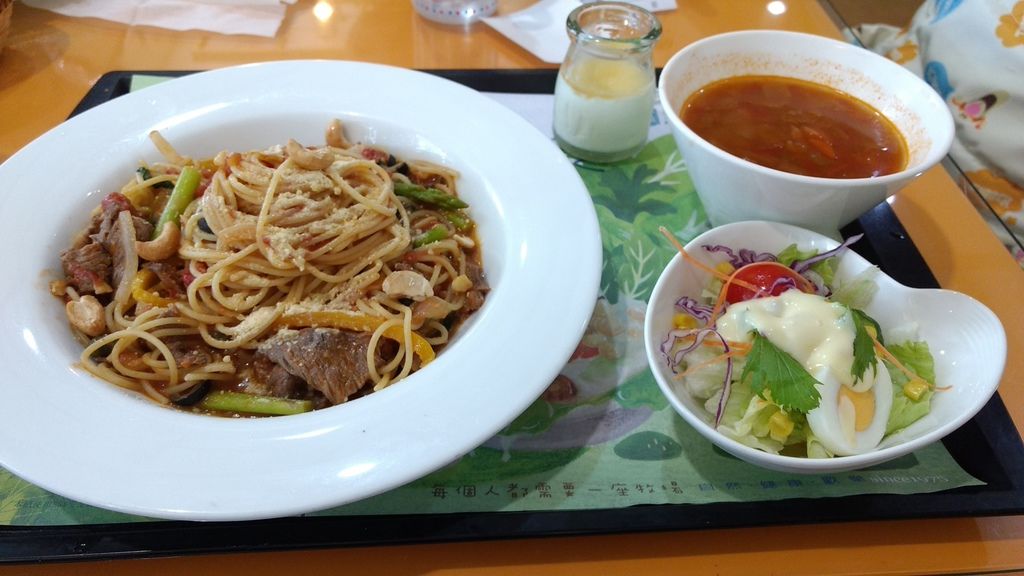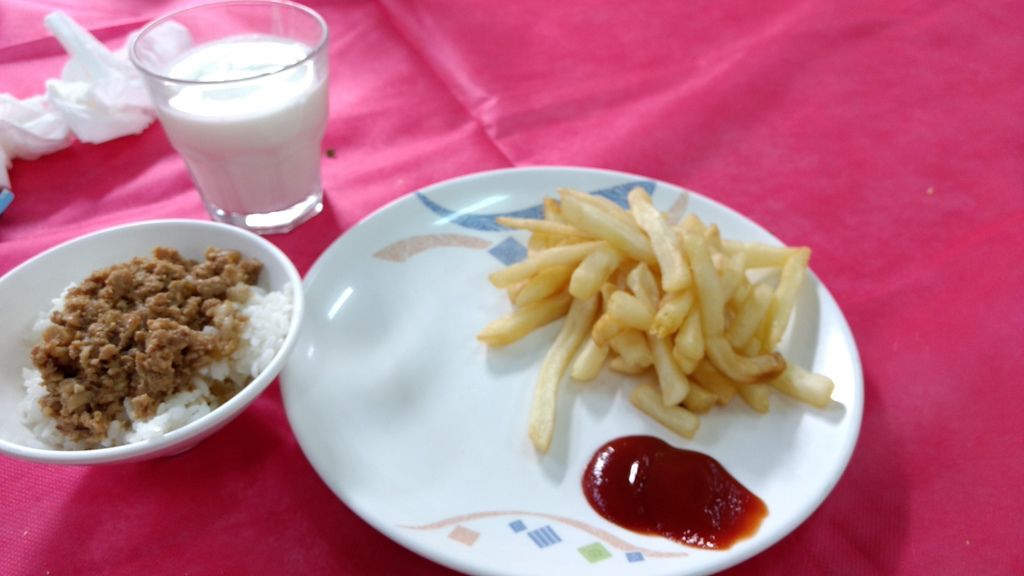 一盤吃完再嗑碗魯肉飯配薯條,這才是我等鄉下人,中西合壁吃得飽奧義,飲料當然秒選鮮奶,平常在家鮮奶都留給岑,自已都捨不得喝,就為了讓她能快點長高,難得可以喝到爽,我視乳糖不耐如浮雲,吃完晚點回房整理行李時再拉的痛快,體內環保連宿便也清一清,對,人生就是這麼極端...![]()