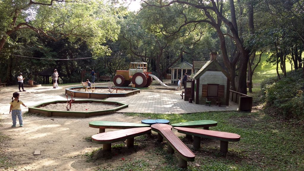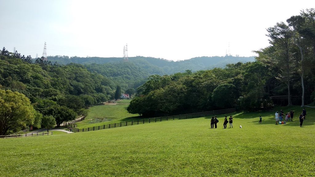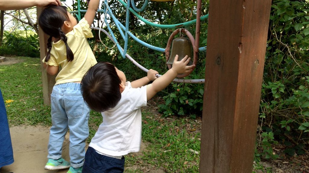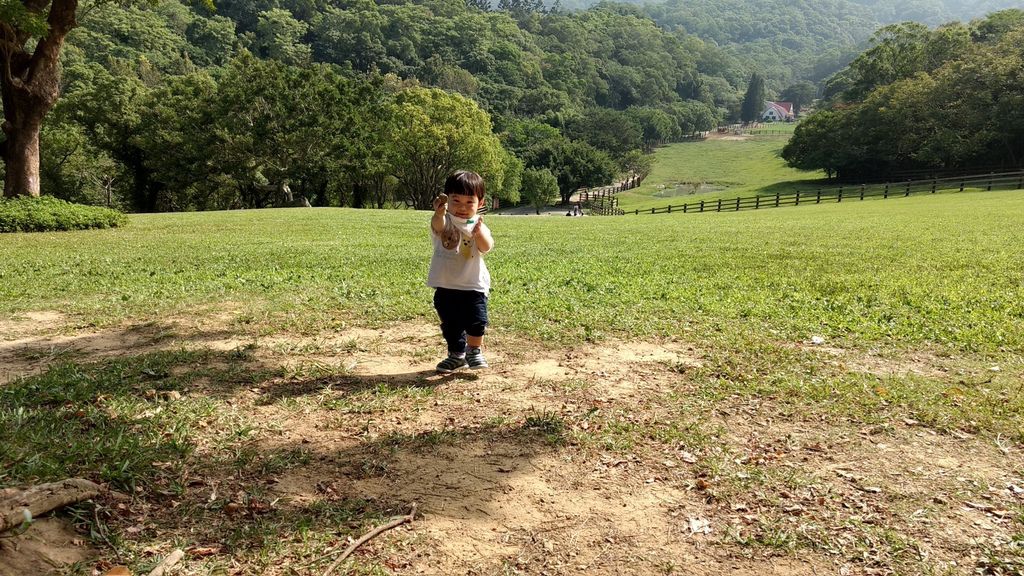 接著到附近的飛牛廣場走走,不過這邊太陡,彥不喜歡坐草皮而唉唉叫...![]()