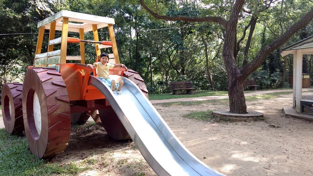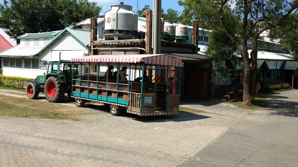 巧遇園區的拖拉機遊園車,挺特別的,一人一百元還有導覽,適合帶長輩參加...![]()