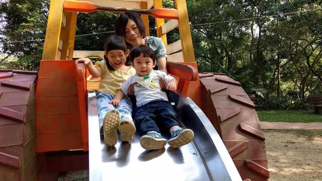 退房寄放完行李,離11點的預約午餐還有點時間,到昨天沒走完的水域生態區瞧瞧,會經過嬰兒推車天堂路只好揹巾扛上身,推車索性就不推了...![]()