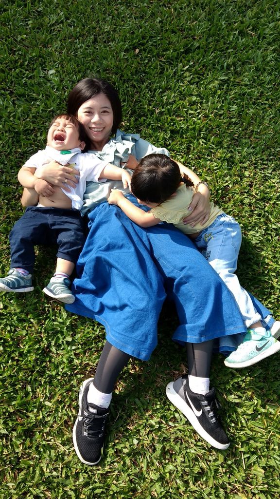 媽媽帶岑滾草皮,彥在旁邊唉唉叫XD...![]()