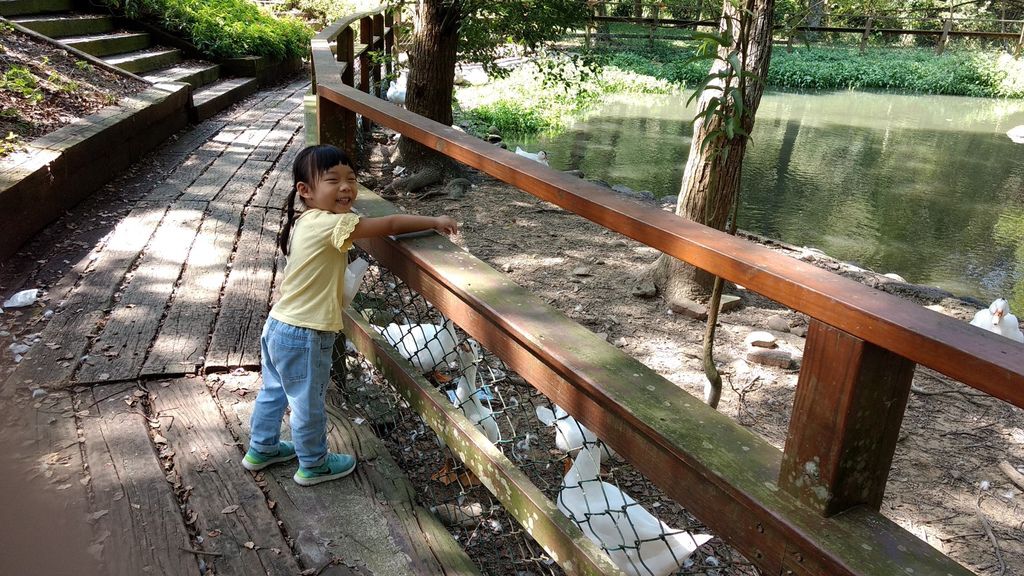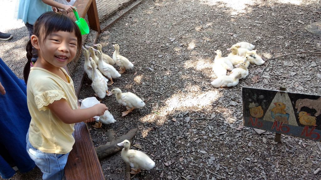 又逛回昨天沒餵到小鴨鴨的地方說要餵食,一早生意上門,搶食吃的很勤...![]()