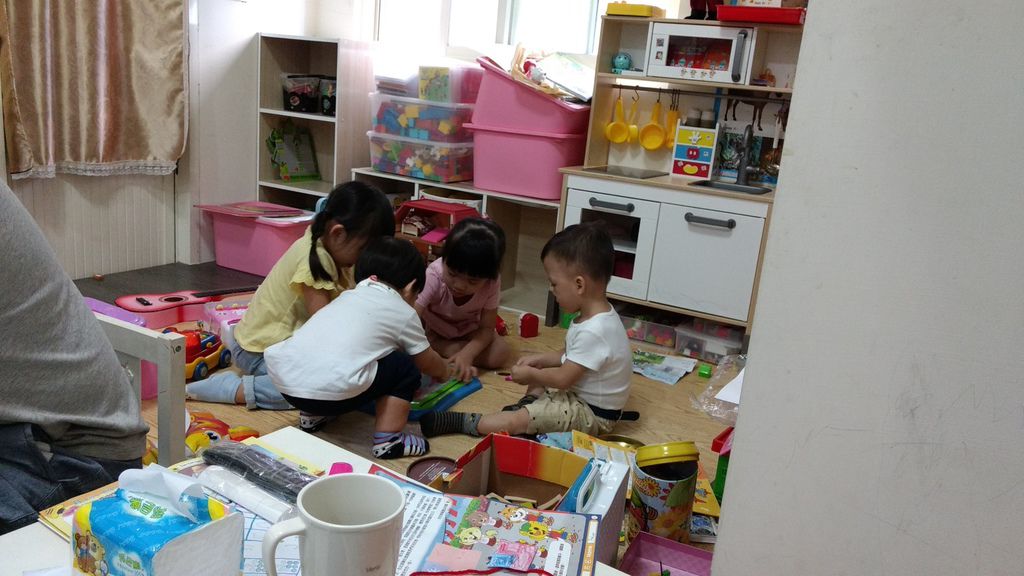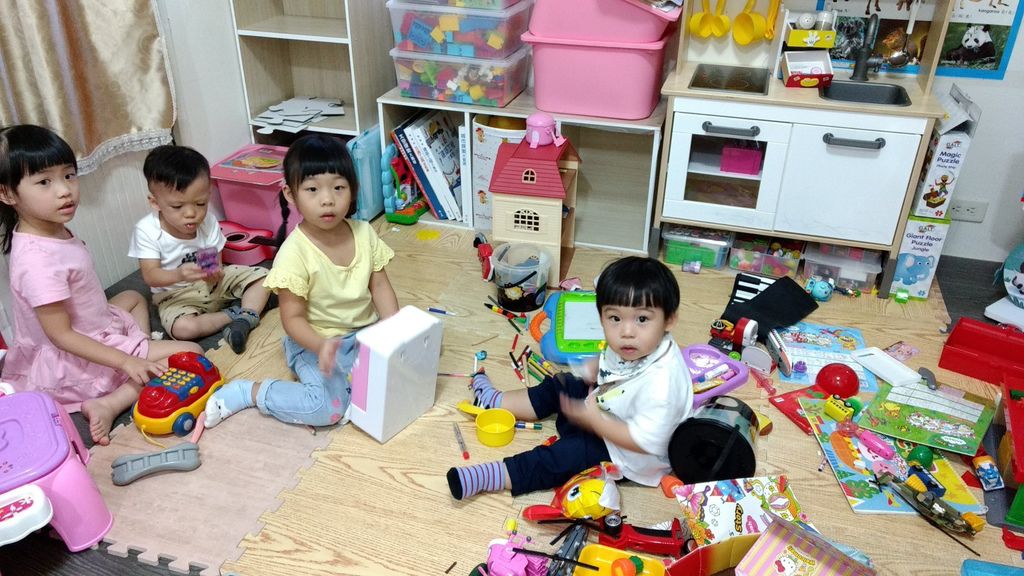 小孩們都在玩具區玩開了,亂的像戰場一樣...![]()