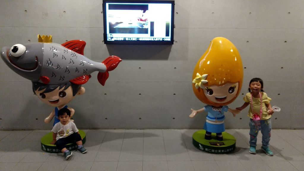 吃飽心情好,離開前跟吉祥物合照,芒果跟虱目魚還算可愛...![]()