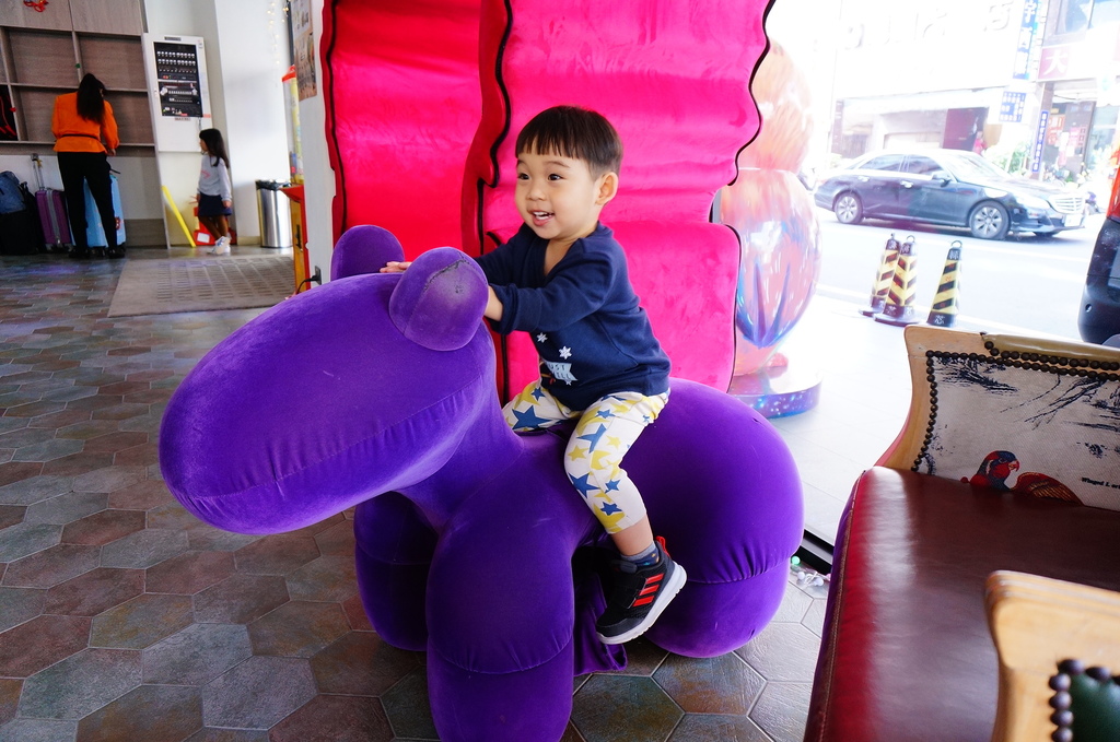 旅店的地點就在鹽埕埔1號出口步行五分鐘即可抵達,就在五福四路大馬路上,交叉路口的大義街,也是步行五分鐘就是駁二相當方便,顯眼全棟彩繪遠遠就能瞧見,小孩知道是要入住這間,驚豔的連連哇個不停...![]()