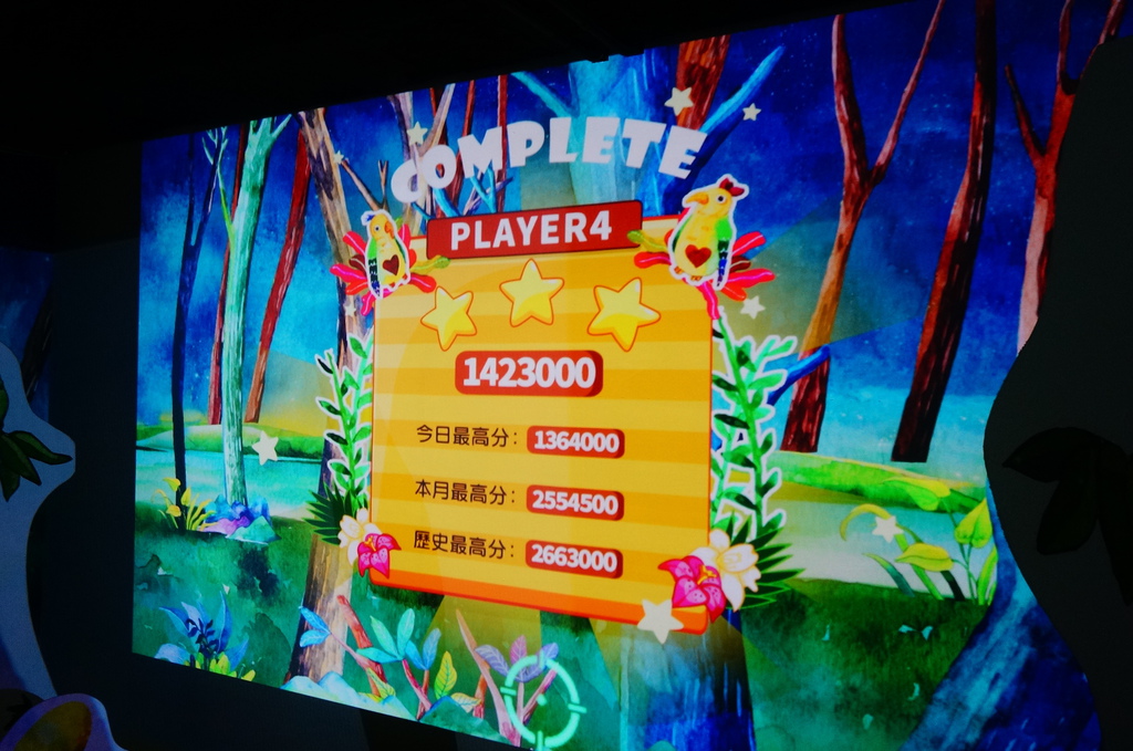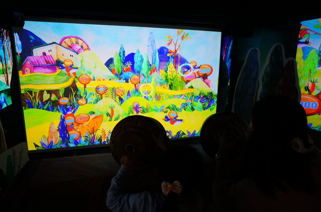 遊戲方式也很直覺,瞄點對著分數靶射擊就可得分,不定時還會有高分的活動靶考驗反應很有趣,總共有兩關,旅店人員很貼心先讓我們熱身玩了一關,相當於玩了兩次,玩完小孩意猶未盡想再玩,很有趣值得親身體驗...![]()