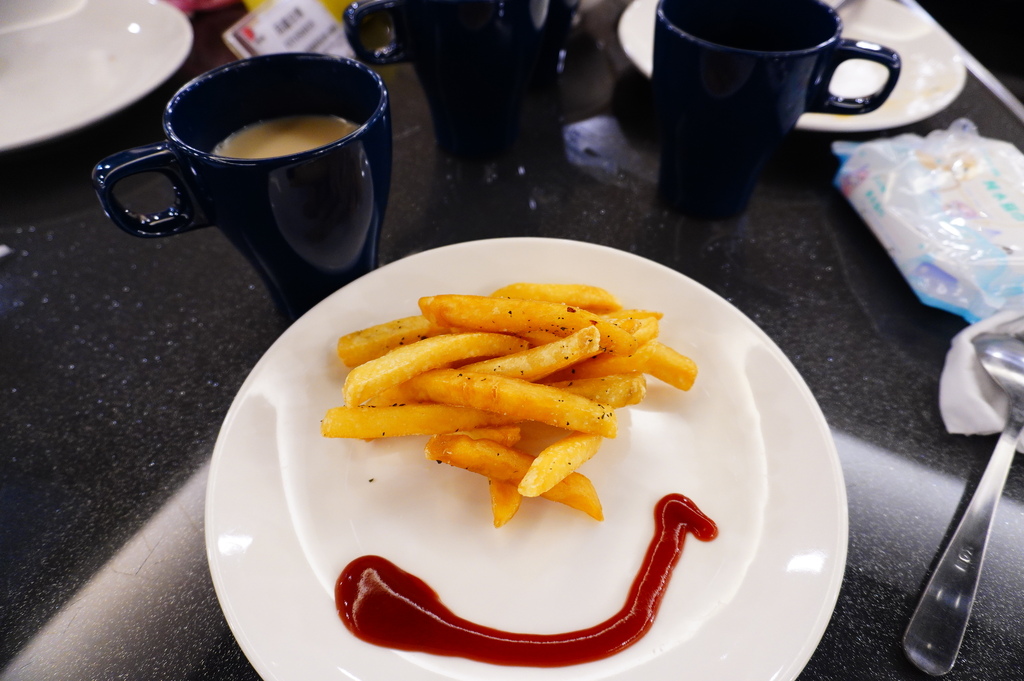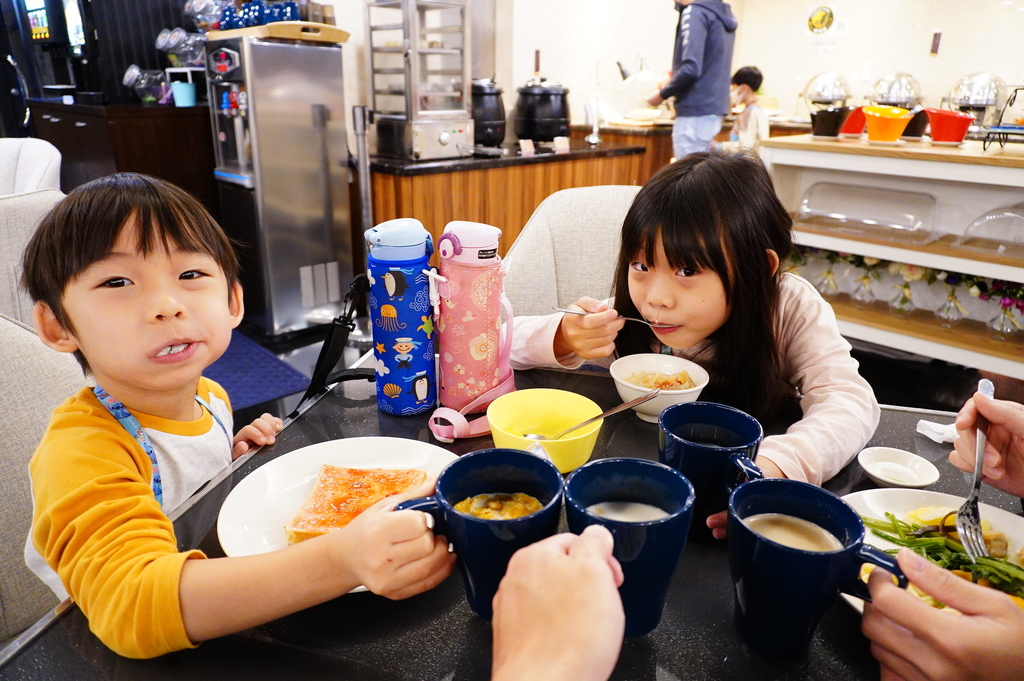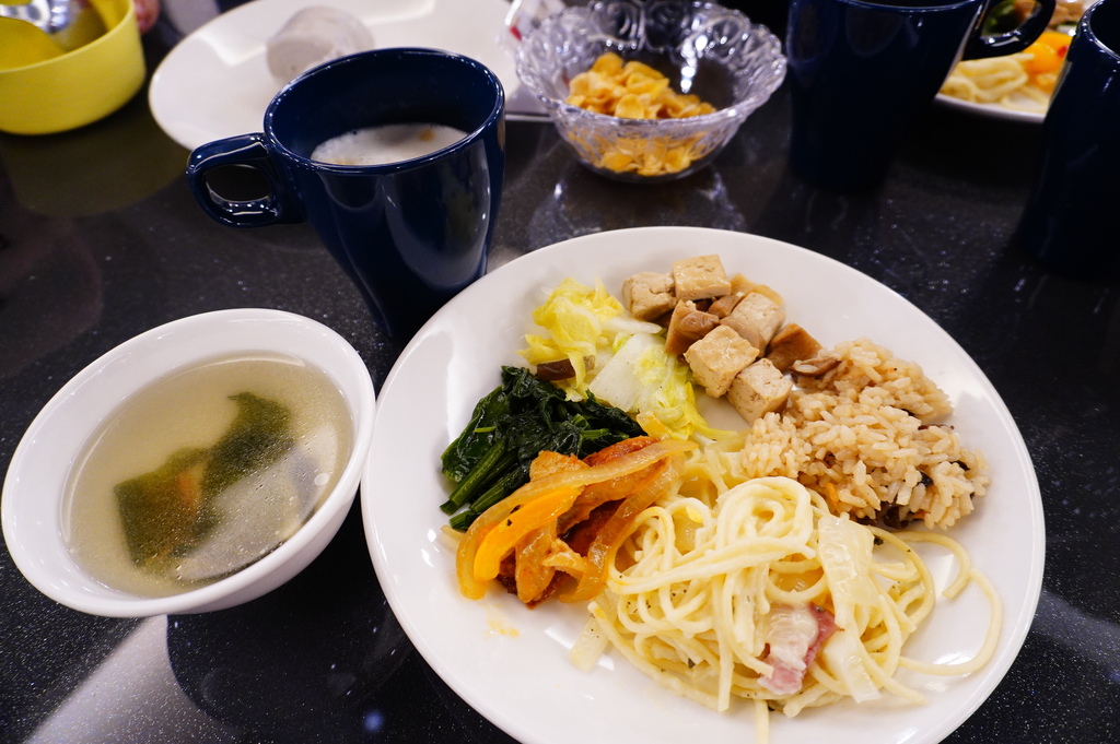住宿含餐的自助Buffet已經算挺有誠意,基本中西式早餐提供、義大利麵與時蔬配薯條,中式白粥配料包子饅頭,一台義式炭焙一台星巴克豆,兩台都好好喝,旁邊還有牛奶、紅茶、黑糖豆漿,飲料選擇多樣性很讚,非得一直測試我膀胱...![]()