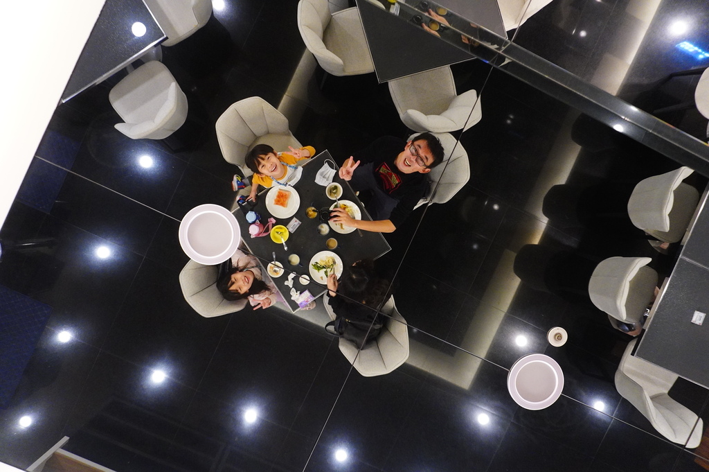 頭上的鏡面玻璃剛好可以用來合照,卡菜渣剔牙抬頭有鏡不求人...![]()