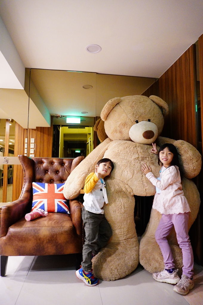 吃飽喝足到B1活動消化一下,江湖規矩先拜碼頭,這隻守門超大熊熊抱起來...![]()