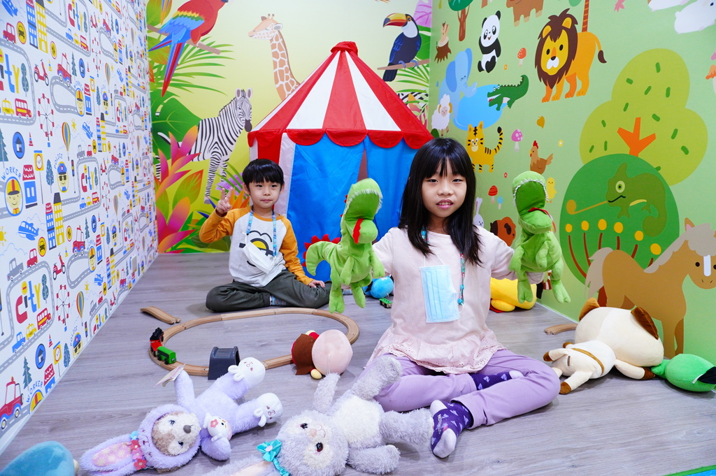 接著到遊戲室放個電,彥有火車玩具就可以玩很久...![]()