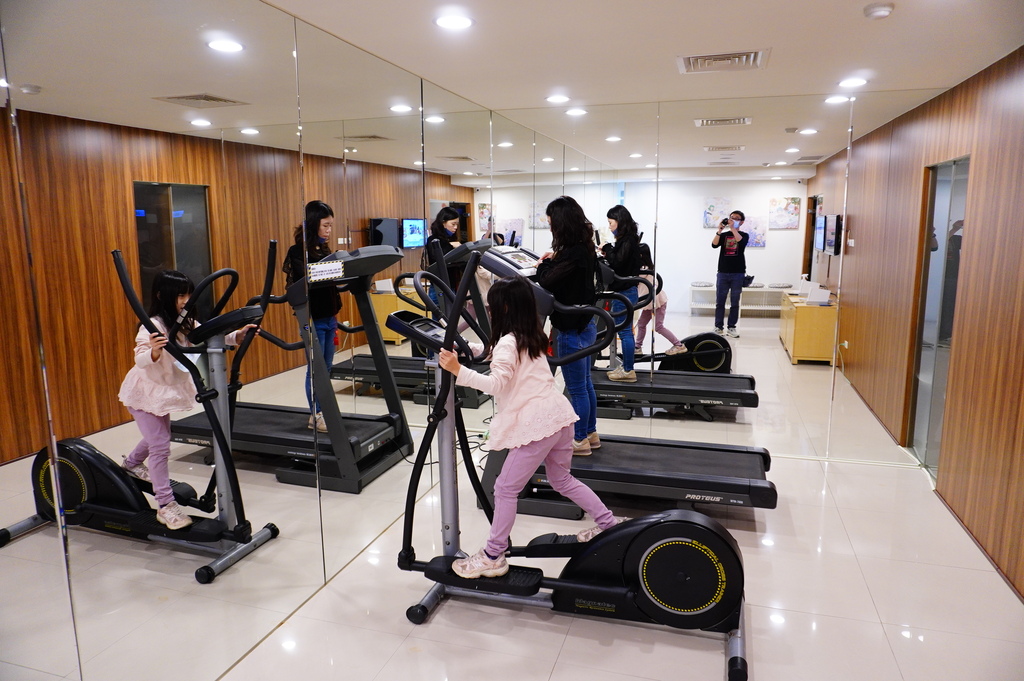 吃太飽有跑步機可以走路消化一下,四周全身鏡就有點尷尬,拍攝者不就(位)...![]()