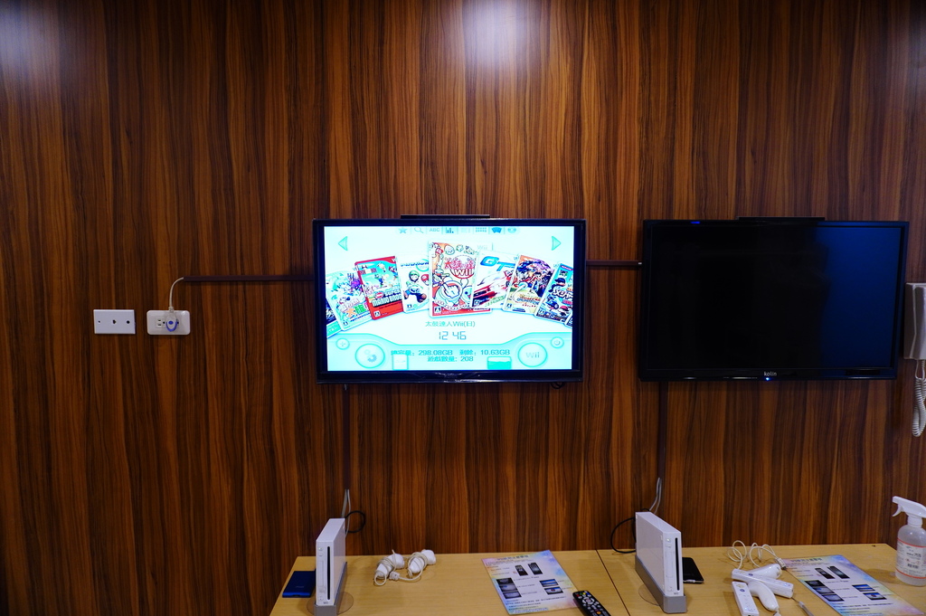 玩了瑪利歐賽車、乒乓球、釣魚等隨意亂點亂玩,最後還是太鼓達人最對小孩胃口,兩人對戰玩不膩,看著看著也跳下去玩,彥一直輸總要有人來挫挫岑姐的銳氣,屁孩彥主動拿我相機說要幫拍,心情是七上八下,我當時害怕極了,深怕聽到碰一聲,會有來自靈魂深處的吶喊...![]()