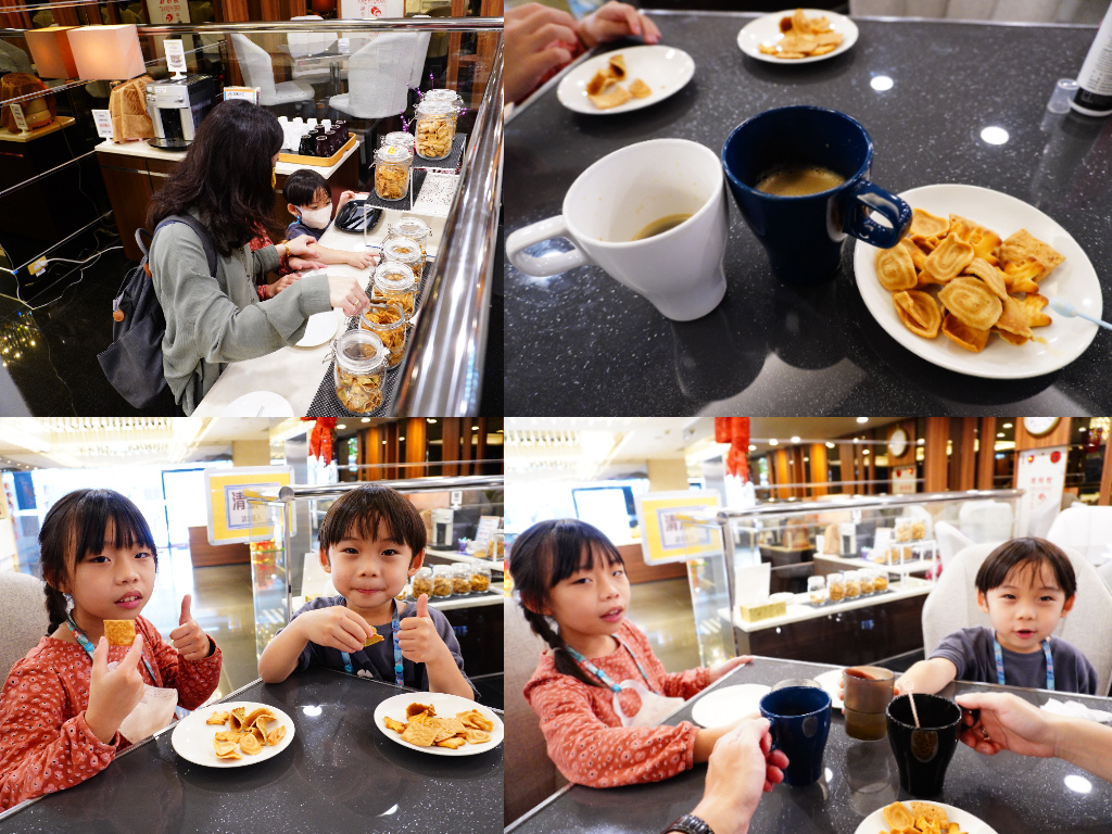 午餐只有隨意吃點東西,下午茶咖啡餅乾補給來得正是時候,整個人又精神起來,小孩餅乾配飲料吃得超開心...![]()