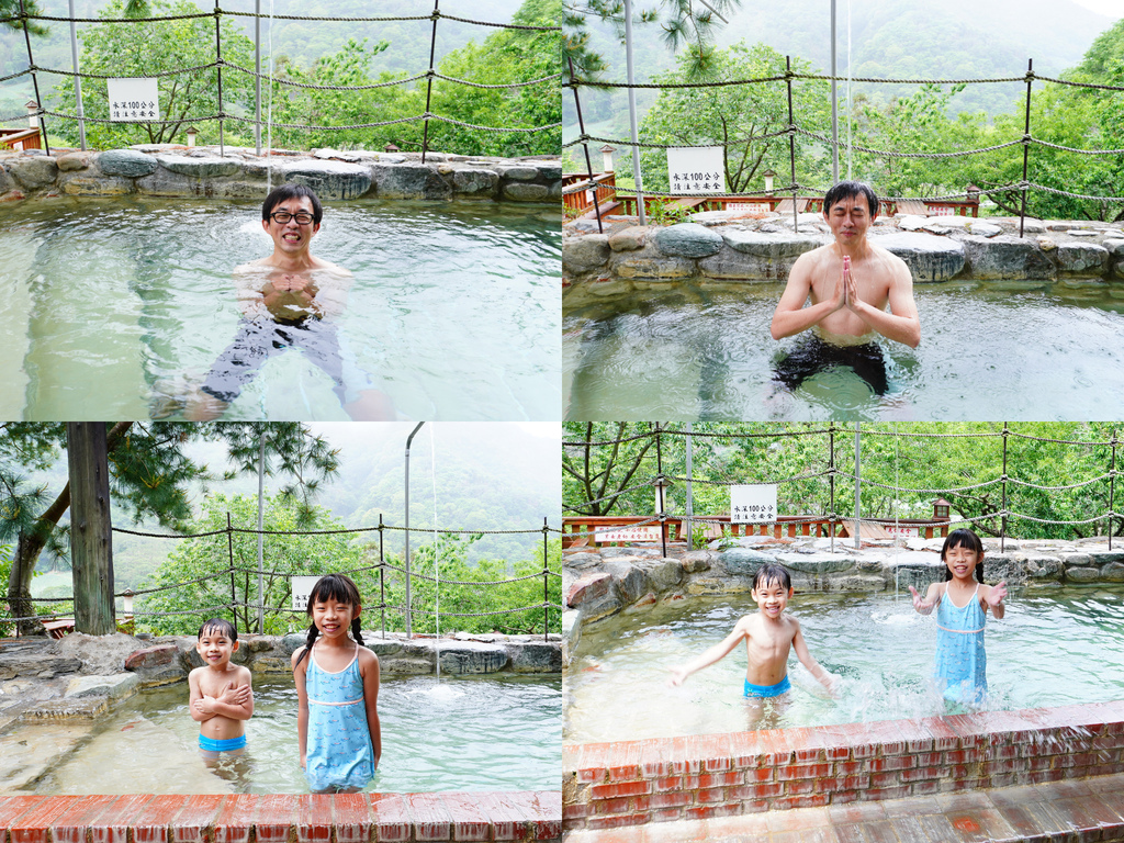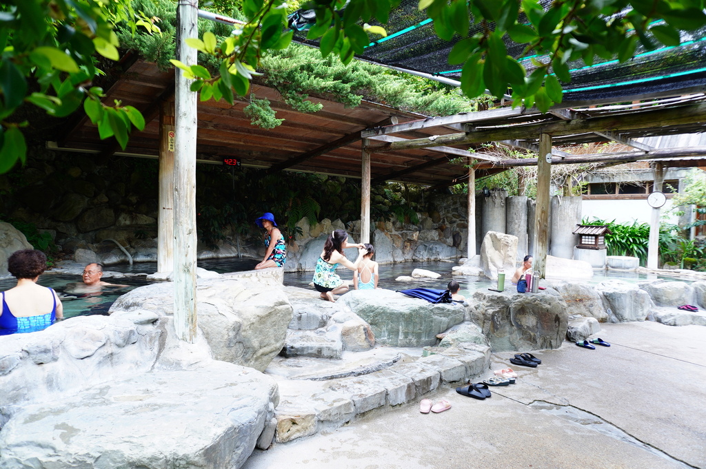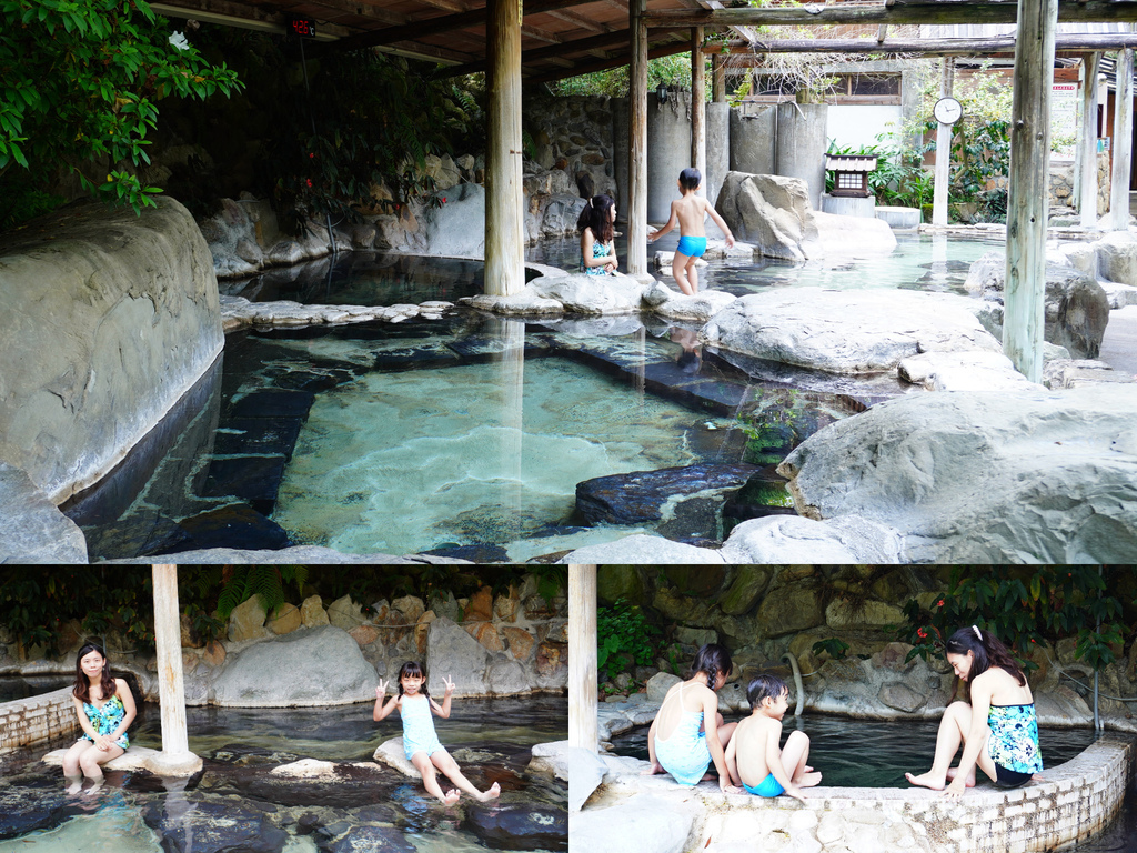 換上泳衣沖洗後準備泡溫泉囉,早上泡湯人不多,婆婆阿伯熱情指引我們,先從比較溫的池開始泡,然後雪琪說就在剛剛MC來了,人生就是這麼湊巧,期待已久的泡湯變成只能泡腳,阿不然去魚池做足療啊...![]()