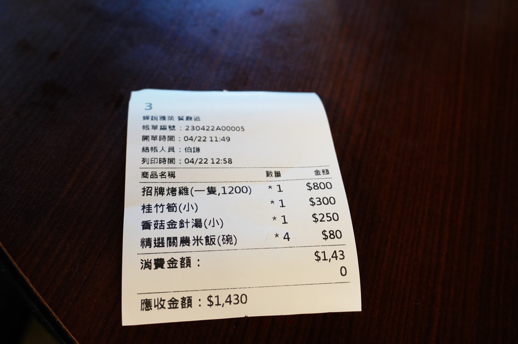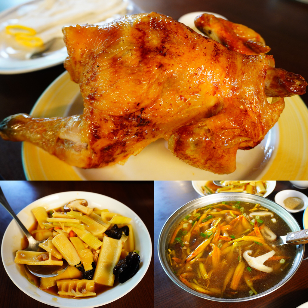 怕吃不完總共只點了三道菜,桂竹筍、香菇金針湯、吮指脆皮烤雞,然後又怕吃不飽點了四碗白飯...![]()