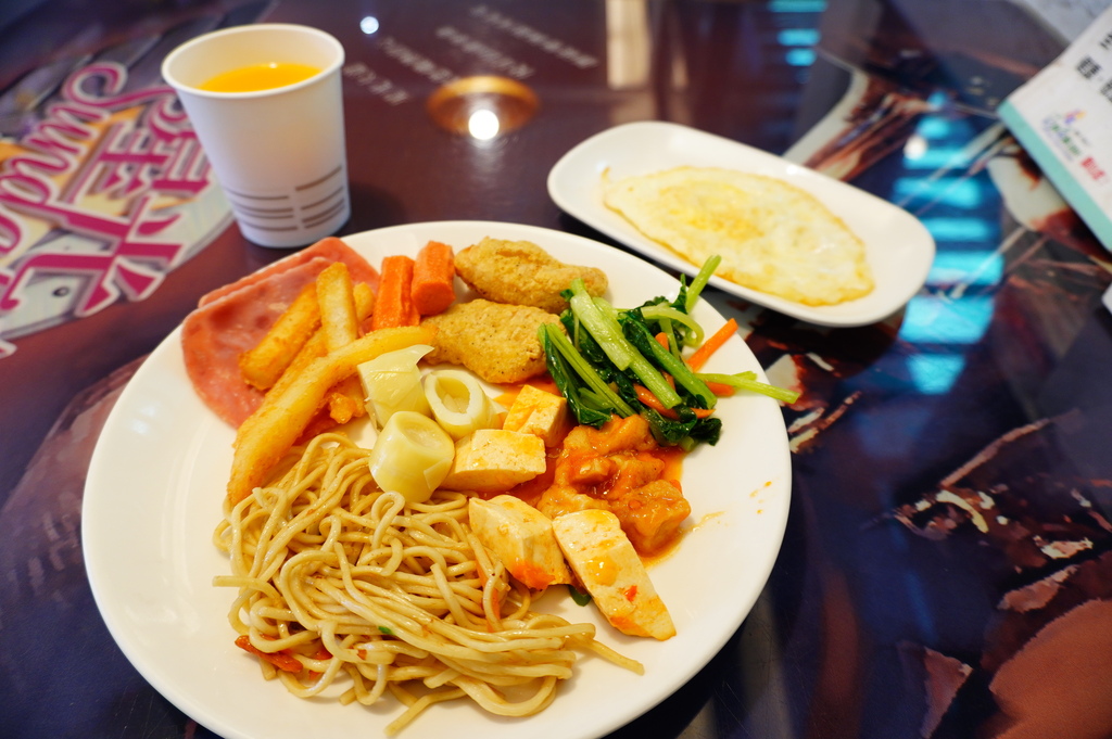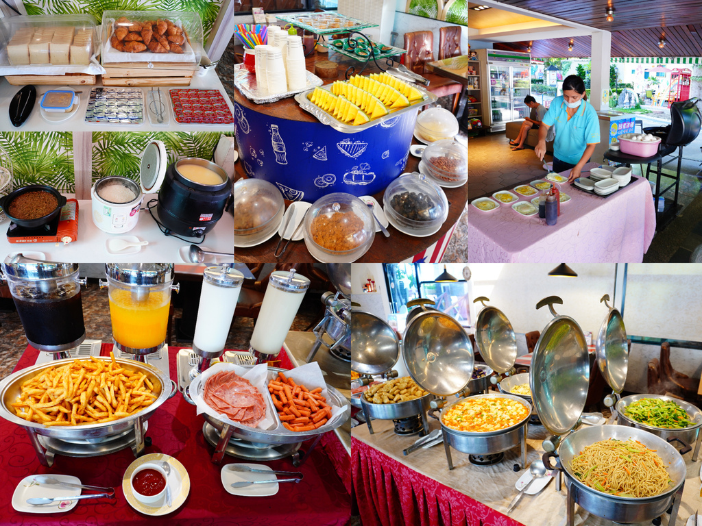 隔天一早騎著腳踏車來吃豐盛自助早餐,有中式清粥小菜,也有西式熱狗雞塊薯條,可烤麵包土司果醬,與果汁鮮奶豆漿咖啡取用,還有新鮮水果,煎蛋已算是高級料理,可比照牛排可選熟度...![]()