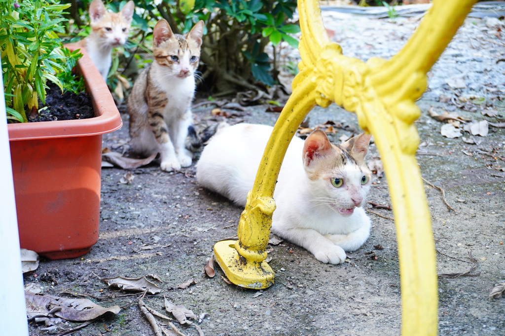 離開前的巧遇,貓媽媽帶兩隻可愛小貓出來見客...![]()