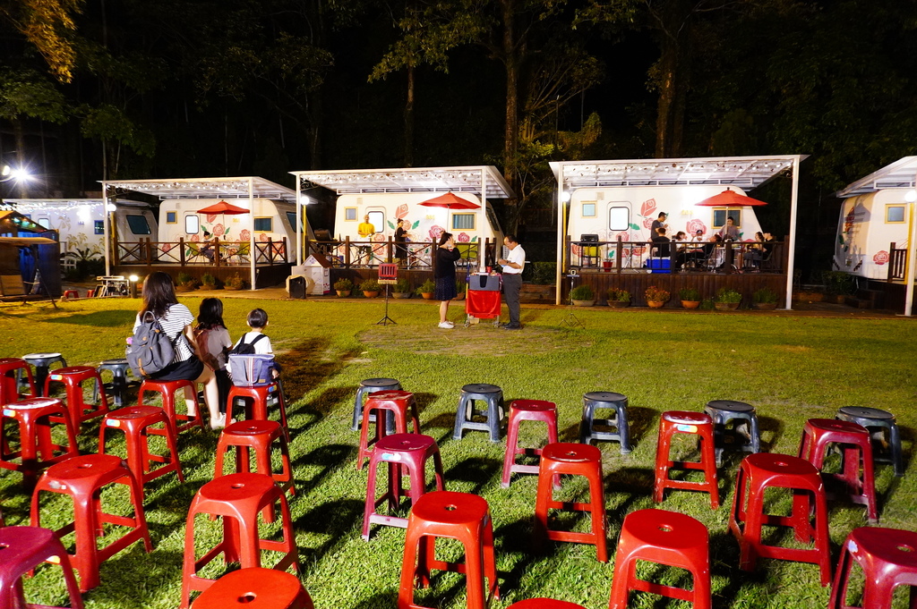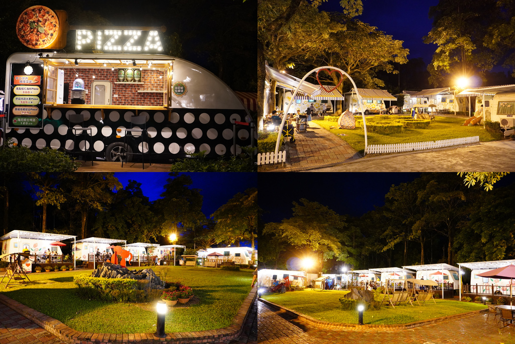 晚餐吃完出來天色已暗,用餐時段披薩車開始營業很有FU,住宿有折價券可抵折50元,燈光點綴下的露營區顯得別有風情,除了天氣熱了點,不過露營車好處就是台台都有冷氣吹...![]()