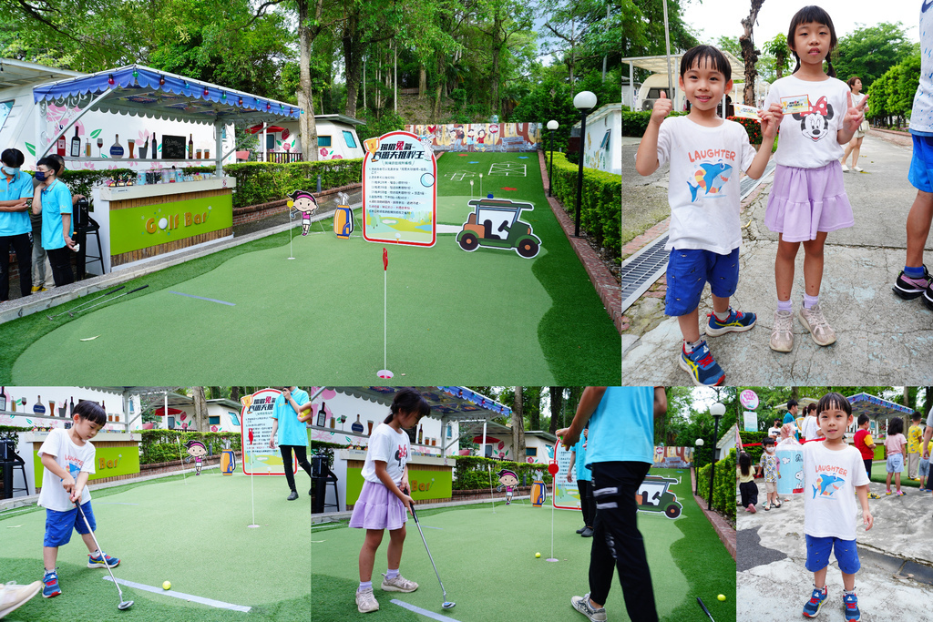 做完披薩剛好趕上另一場活動,揚眉兔氣高爾夫球推桿王,免費參加可打五球,全進還有獎盃,進二顆就有小禮物,岑跟彥自由發揮好玩就好,有緣主管也在場,瞧彥連球桿都拿不好,於是跳下來幫忙,高手助陣拿到史努比存錢筒啦,果然還是那句人帥真好...![]()