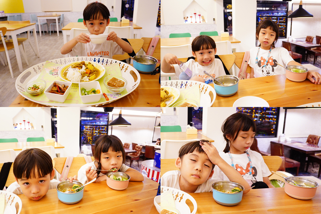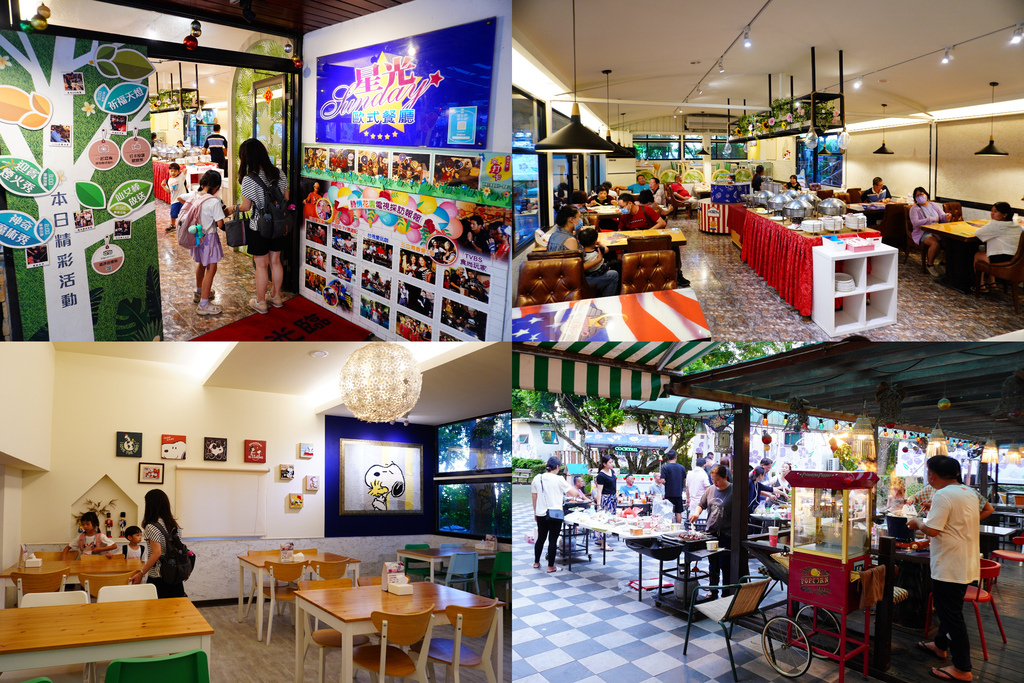 活動完回城堡二館開兒童超跑,吃披薩點心繼續玩耍,傍晚搭接駁車來一館吃晚餐,是熟悉的老地方,星光歐式餐廳,露營車客人在外面熱鬧BBQ,選了最裡面的座位,是彥喜歡的史努比裝潢...![]()