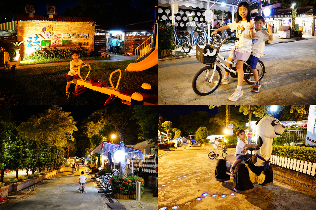 剛剛還在打瞌睡,怎麼這麼快又充好電,晚會前的空檔繼續玩不停,這裡也有兒童腳踏車及戶外兒童遊戲場...![]()