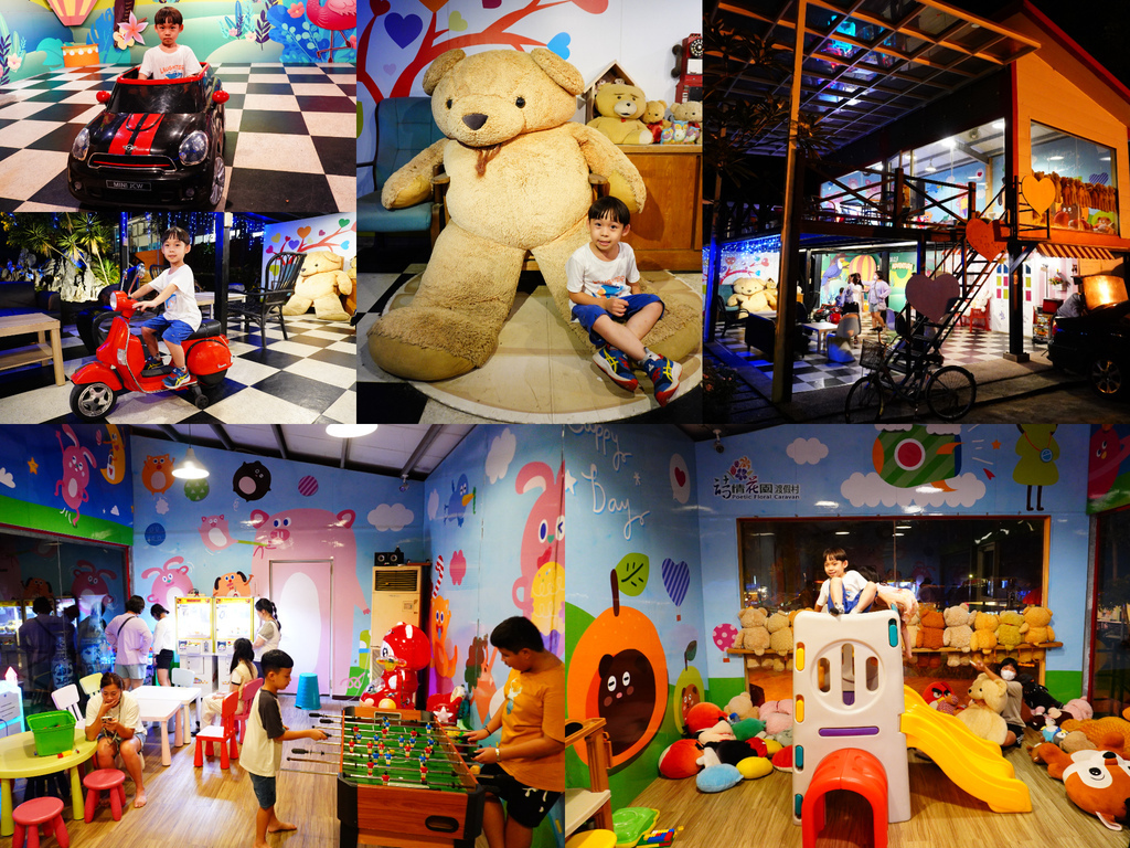 也有室內遊戲室,樓下各種可愛玩偶與車車可以擺拍,樓上冷氣房遊戲室,玩偶也是多到不行...![]()