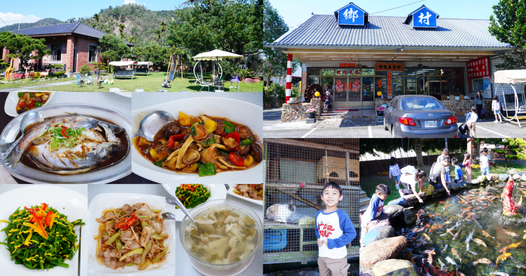 美味飽足的一餐,四菜一湯一千三平實價格,有魚有肉有水果,偏遠鄉下餐廳多以桌菜團體為主,散客常常隨便單點就破二千,店家有提供小家庭經濟套餐友善許多,另外還有寬敞的庭院空間,小孩可盡情奔跑,兒童遊戲場玩耍放電,餵魚賞兔欣賞群山美景,微風徐徐飄來桂花香,感受真是美好