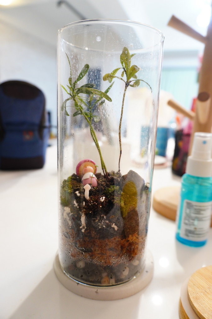 ,要來挑戰新品種酒杯菇,岑姊選做菇菇生態瓶,繼續種看看會不會也長菇...![]()
