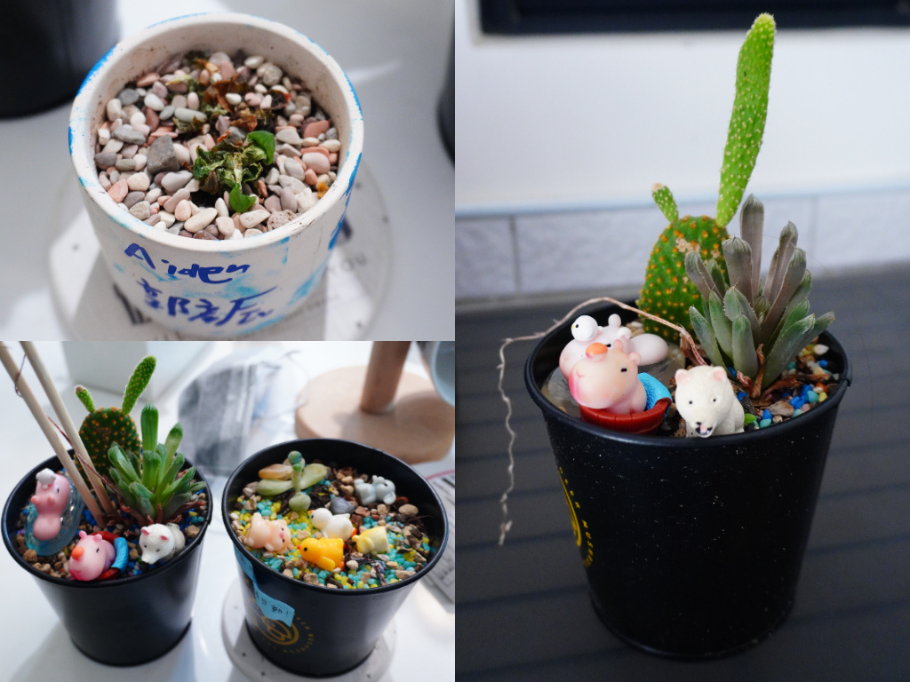 岑與彥戶外教學獲得兩個多肉盆栽,回家岑姊的就打翻,直接宣告不種了...![]()
