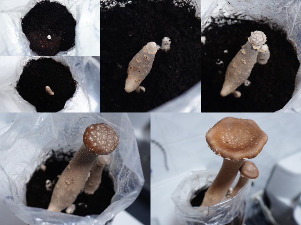 酒杯菇足足等了快一個月才發芽,一度覺得不會長了,某天冒了個頭,驚喜之後猛爆生長,每天都有不同模樣...![]()