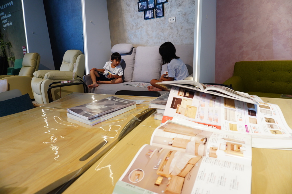 看完現場展示,再看DM認真挑款,小孩當自己家在那刁牌,說這裡很好玩...![]()