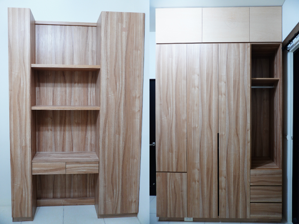因為還要放書桌,衣櫃能給的極限空間偏小了些