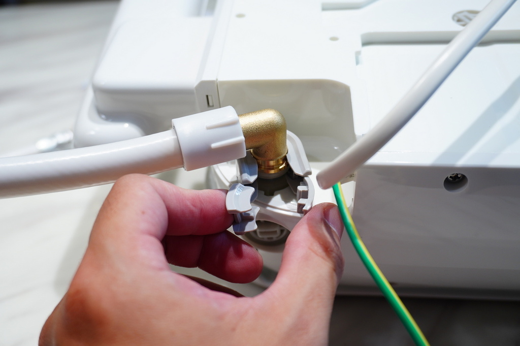將另一頭水管接入馬桶座,固定後就大功告成...![]()