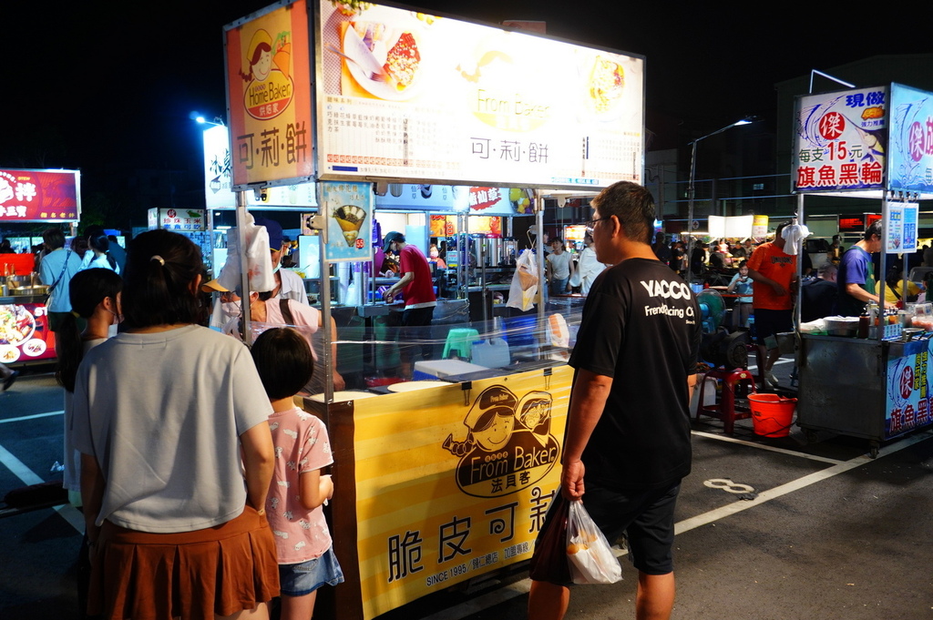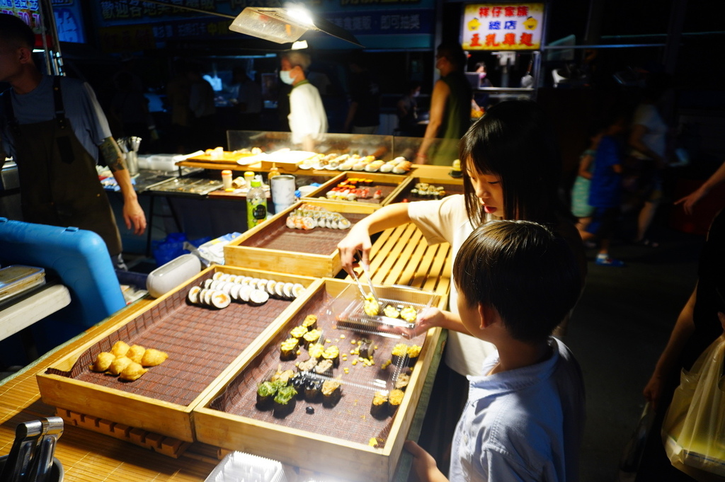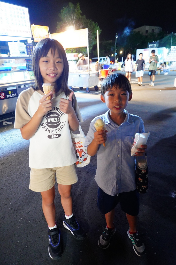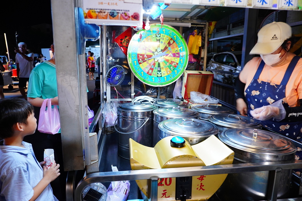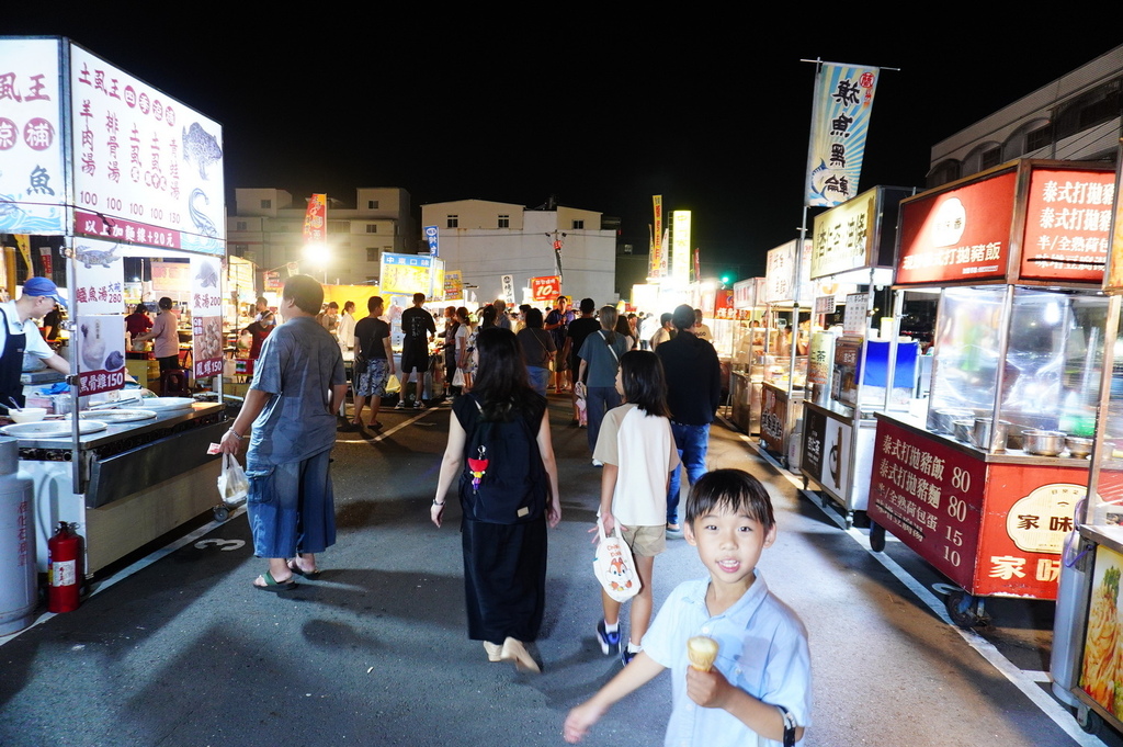 夜市動線很大條,逛起來舒服不擁擠,人潮也不像市區觀光夜市般被推著走,主要多是在地鄉親採買晚餐宵夜,路口轉彎處有擺垃圾筒,方便丟棄場地自然就乾淨,吃的攤位佔絕大部份,玩樂攤也不少,唯恐破財都走很快