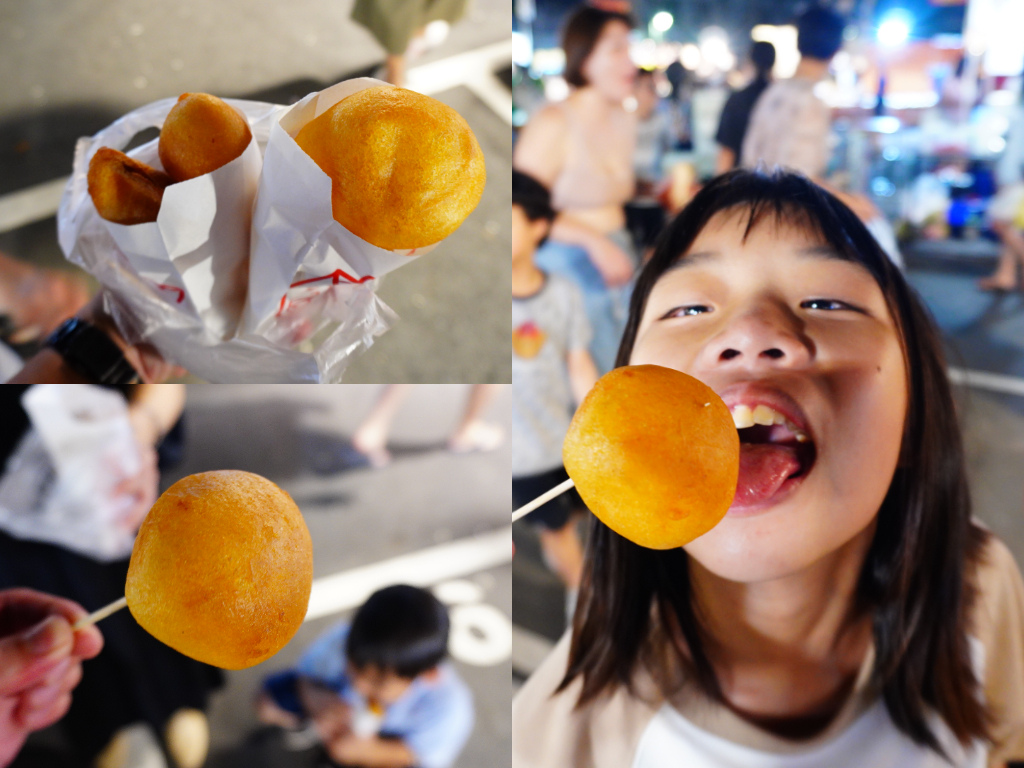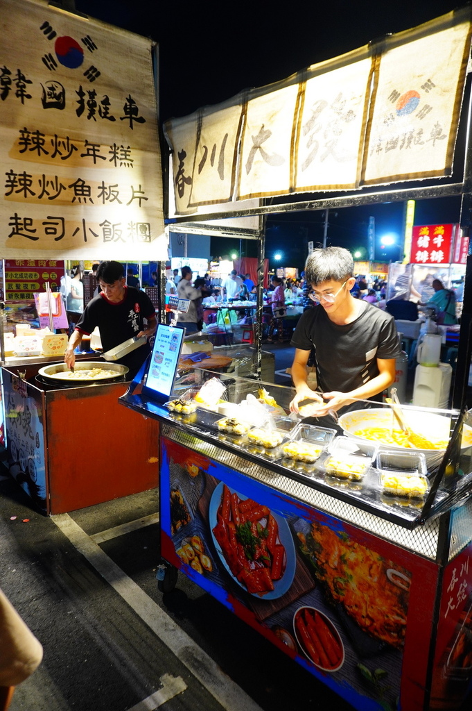 隨逛隨吃依直覺覓食,主要還是配合老婆小孩的喜好,先逛一圈算是熱熱身,第二圈開始小跑步,除了一攤坤蚵仔煎排到誇張,有點想排但被白眼先作罷,採買第一攤,韓國攤車春川大發...![]()