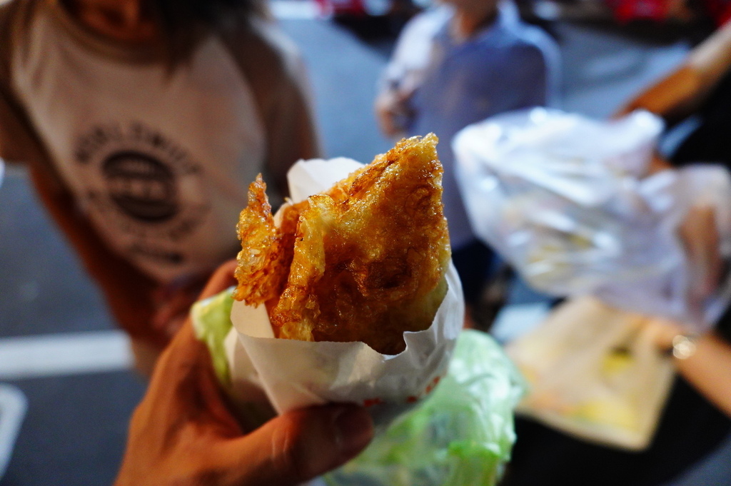 長青蔥肉餅,小時候愛吃蔥油餅很懷念,傳統口味已經越來越少見,現在炸彈蔥油餅噱頭更多,只是上批剛賣完,現包現炸等了好一會兒...![]()